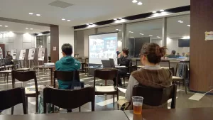 遠鉄百貨店スカイテラスの浜松アーツ&クリエイション交流会・活動報告会に来ています。立食パーティーかと思ったら食べられなくてしょぼん