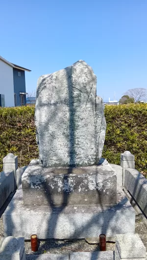 白拍子の若宮八幡神社の西、犬塚橋の西にある長松堂箕形(野口在色)の墓。句は読めないけれど辞世の〈墓の霜當座斗かりそ白宇留里〉か