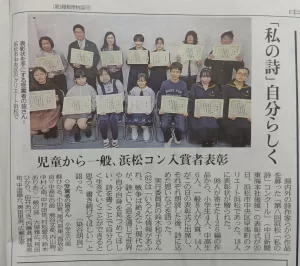 中日新聞3月21日朝刊に第8回浜松「私の詩」コンクールの記事が掲載されていました。
